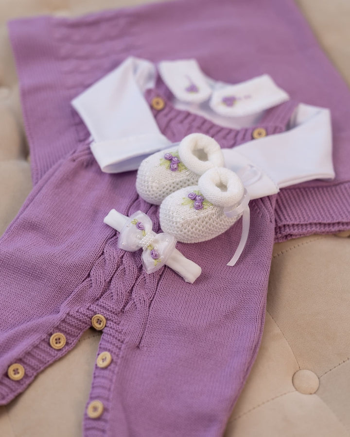 Il Cappellino per Neonati Lilla è un accessorio essenziale per completare con raffinatezza il corredino della tua piccola principessa. Pensato per offrire calore, morbidezza e stile, è perfetto da abbinare al kit uscita maternità per un look coordinato e sofisticato.